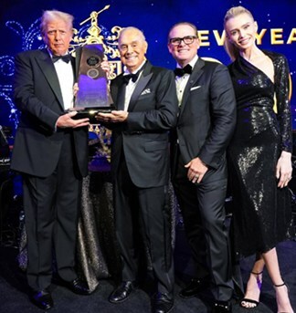 Brandon and Natalie Dawson rang in the New Year at Mar-a-Lago, where they had the honor of awarding President Trump the Six Star Diamond Lifetime Achievement Award